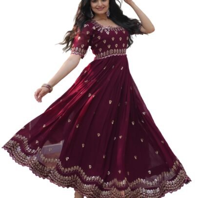 Fashion Basket Women’s Georgette Anarkali Gown Maroon