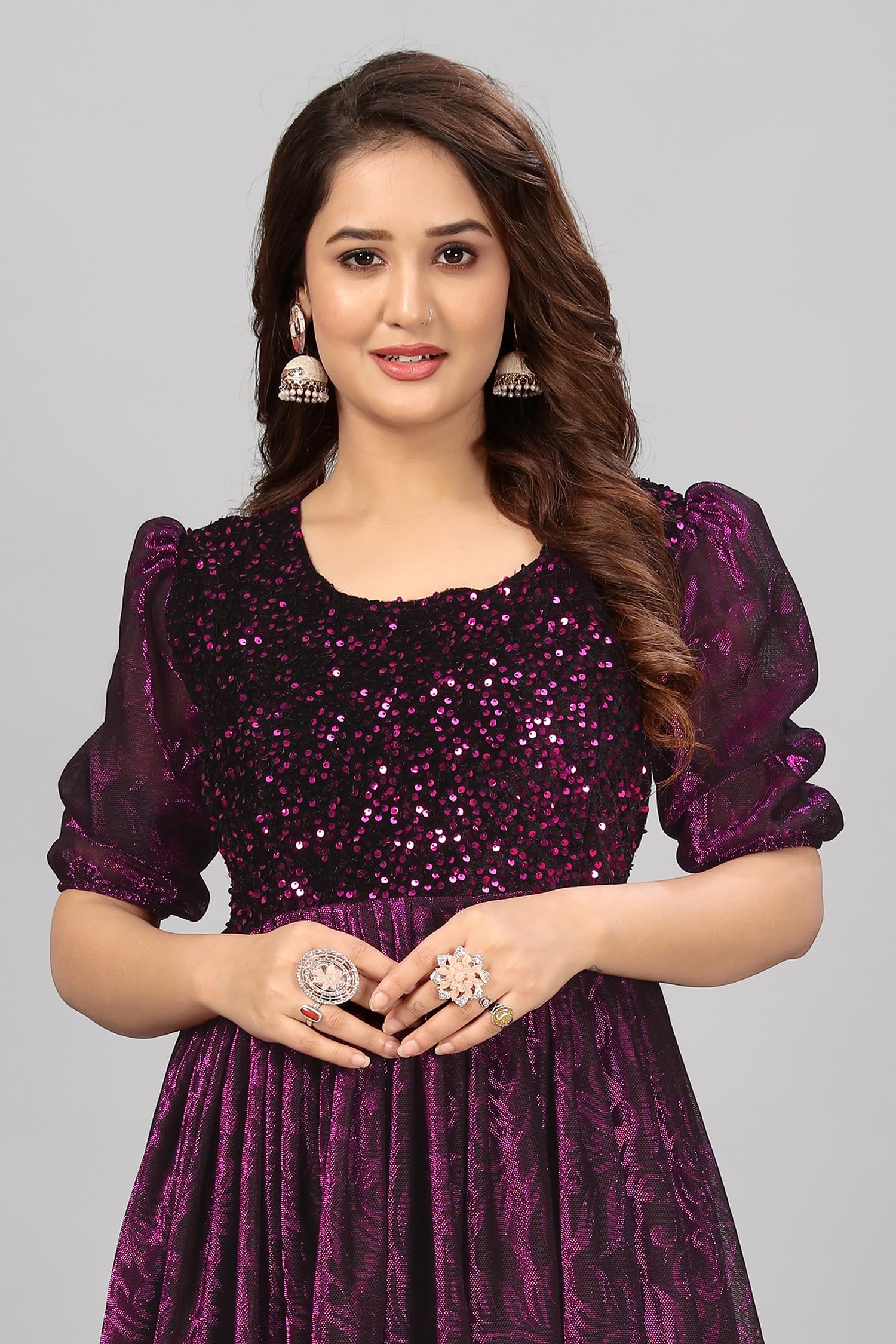 - STYLISH SILHOUETTE: Anarkali-style flared design with empire waistline and full-length skirt that gracefully flows to the floor
