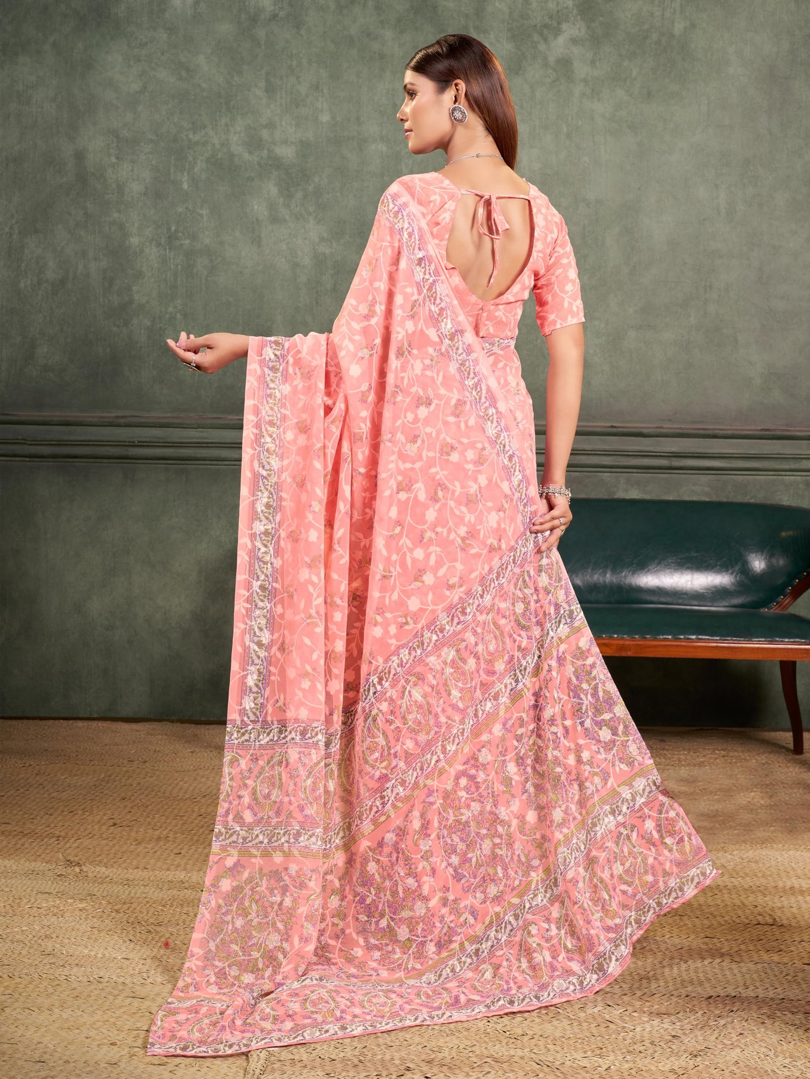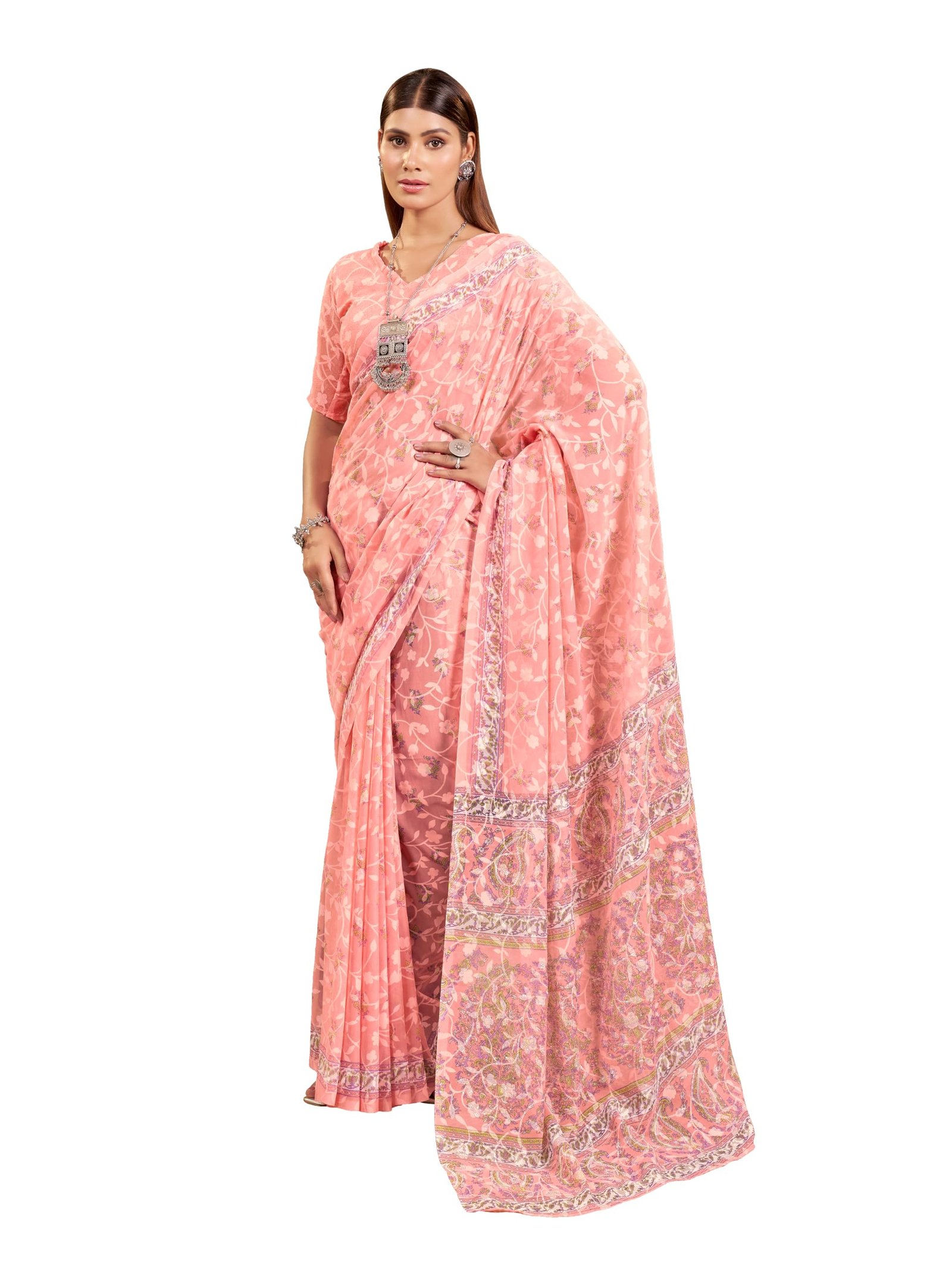 Garden Vareli Floral Design Brasso Saree. Perfect for parties, and festive occasions, this lightweight saree ensures all-day comfort.