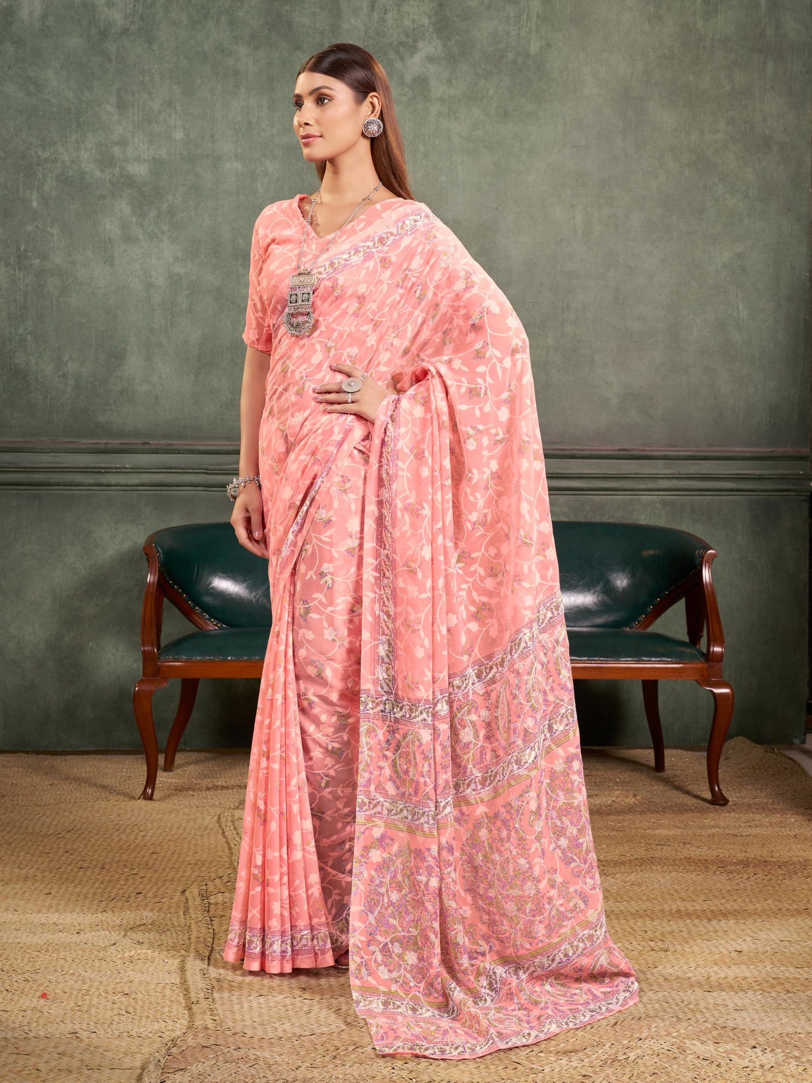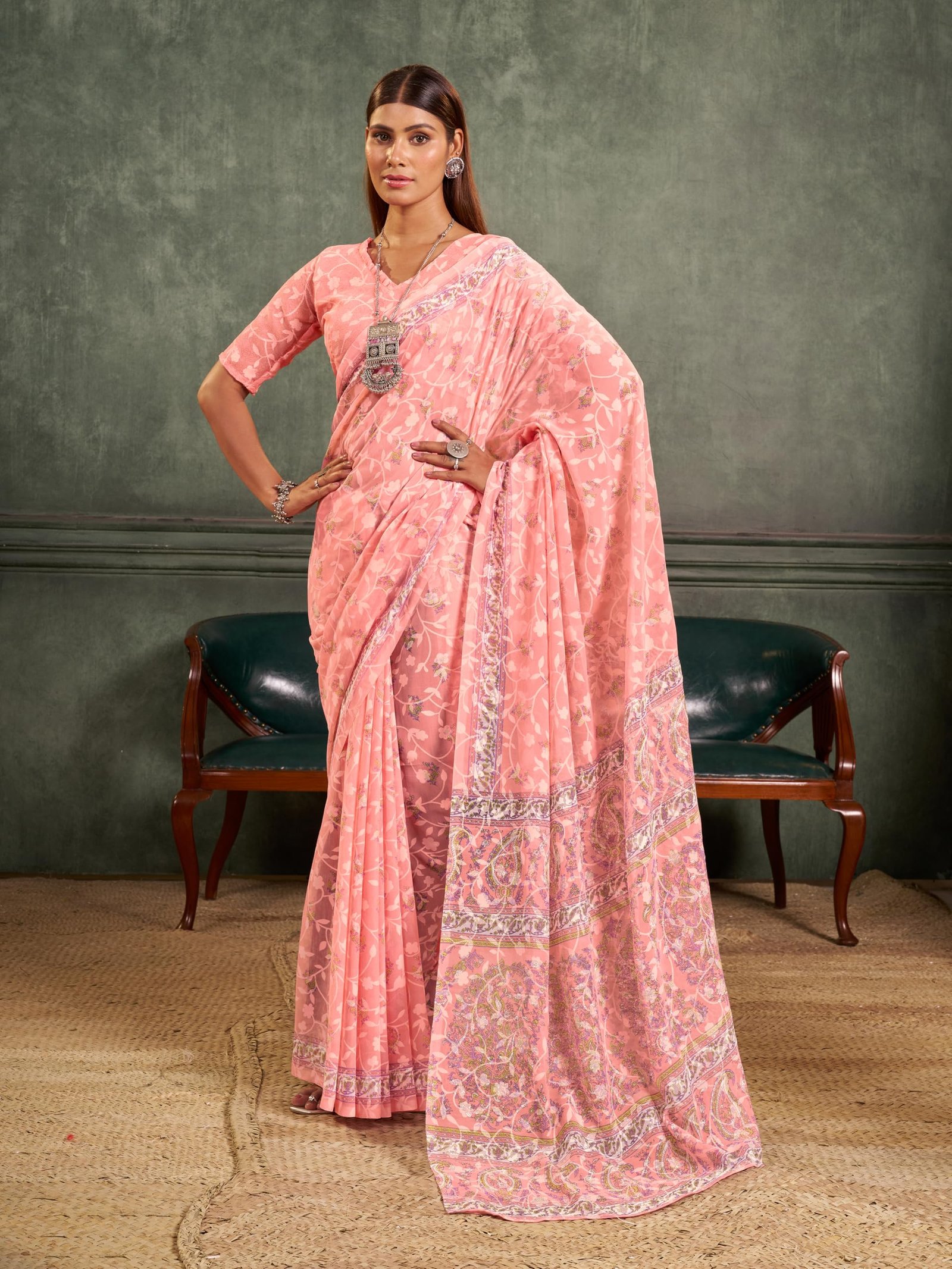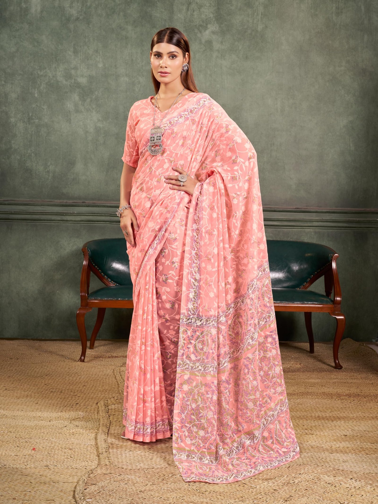 - Beautiful Floral Print Saree. Light comfortable to wear, perfect for Casual, Work and Daily wear.