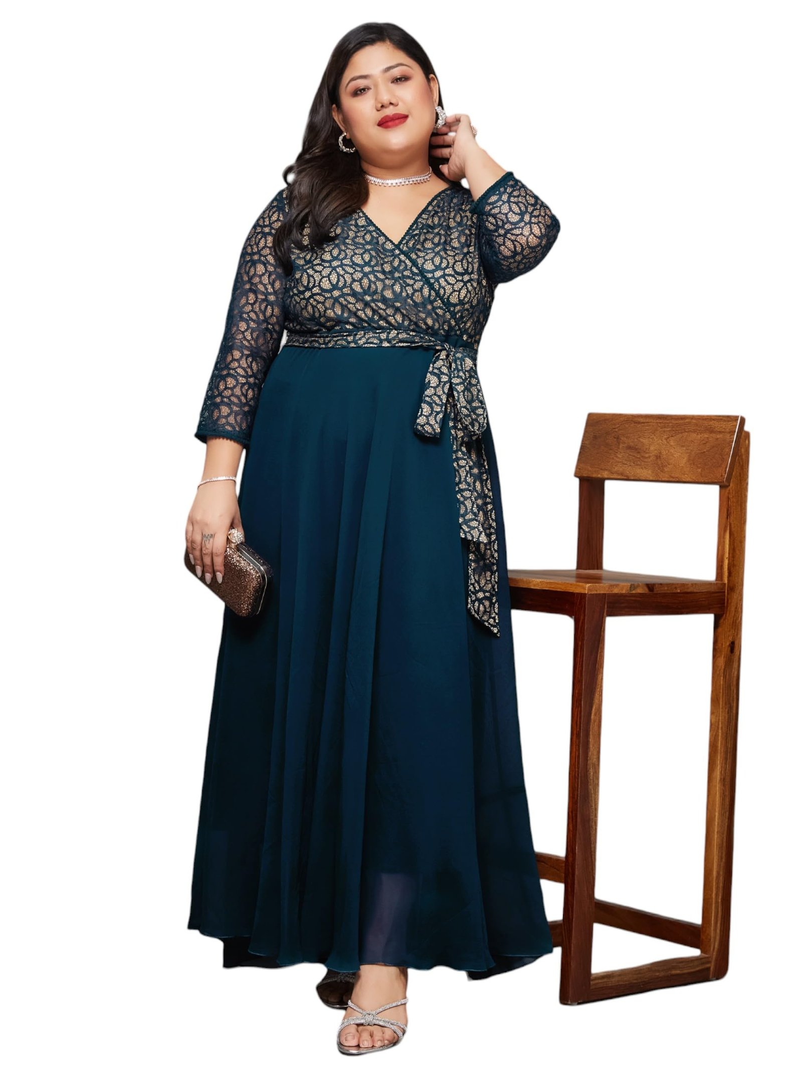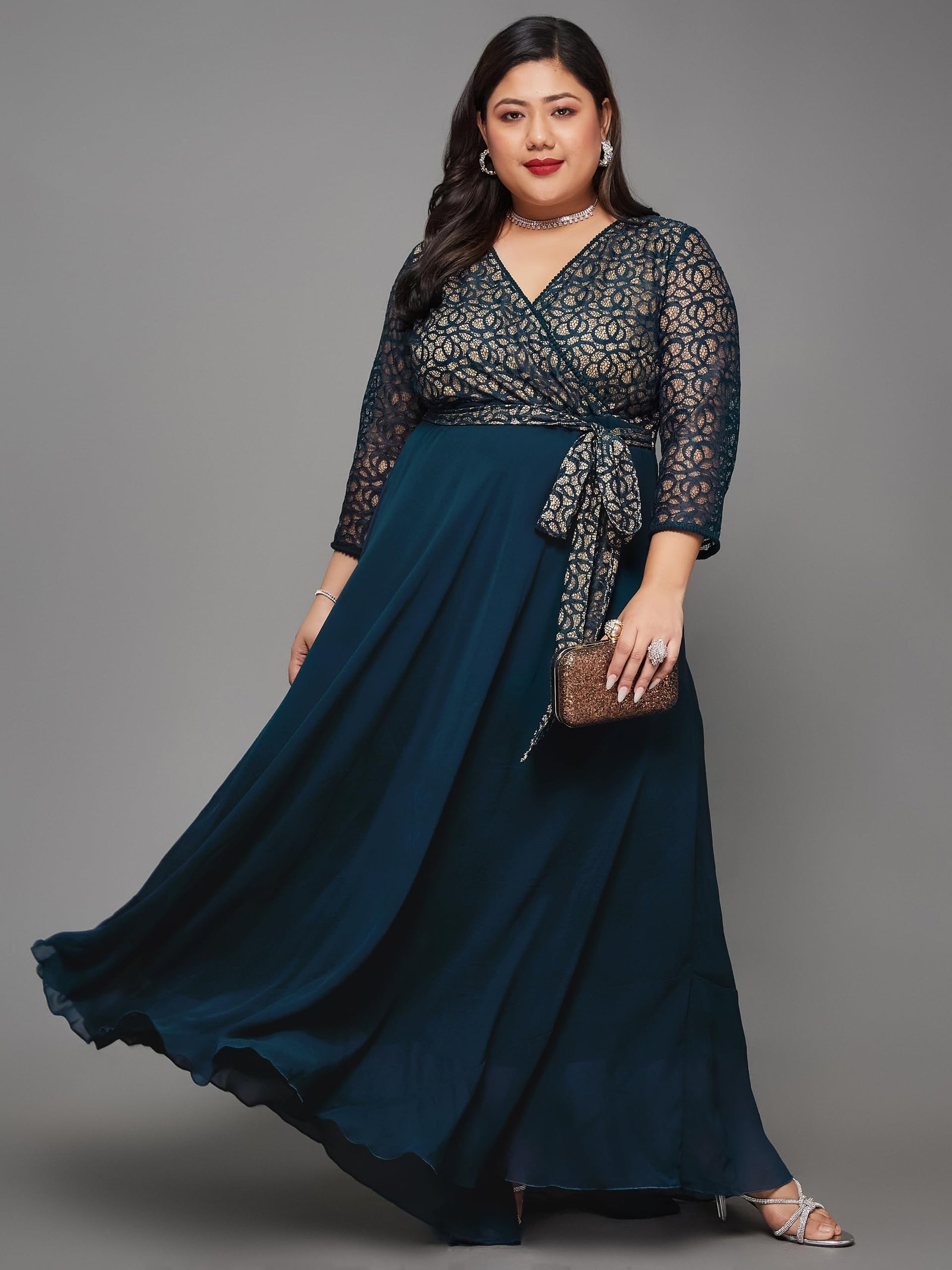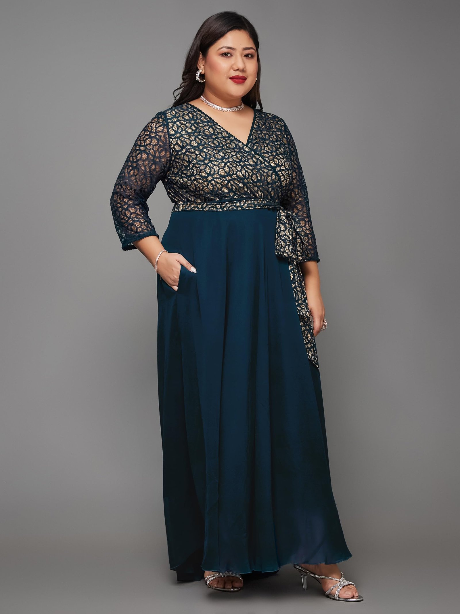 - Style: Wrap | Pattern: Self Design | Fit: Relaxed Fit | Length: Maxi | Closure: Zip | Neck: V-Neck | Sleeves: 3/4th Sleeve | Pockets: Yes, 2 Side Pockets