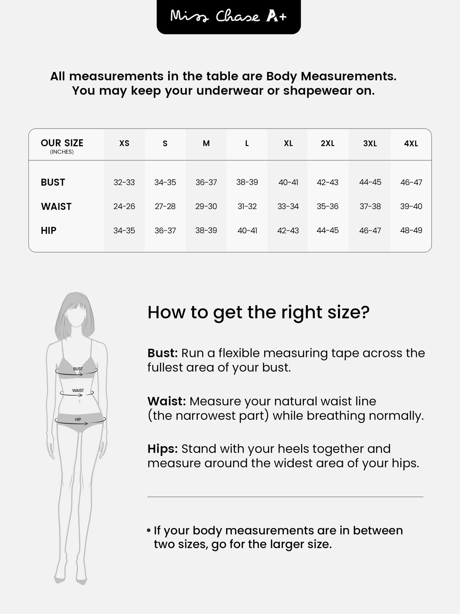 At Miss Chase A+, we go beyond size labels to redefine beauty. With its exquisite fit and unmatched comfort, it is designed to celebrate the uniqueness of Indian women. Every woman shines brighter with Miss Chase A+, which is why our collection motivates and uplifts women.