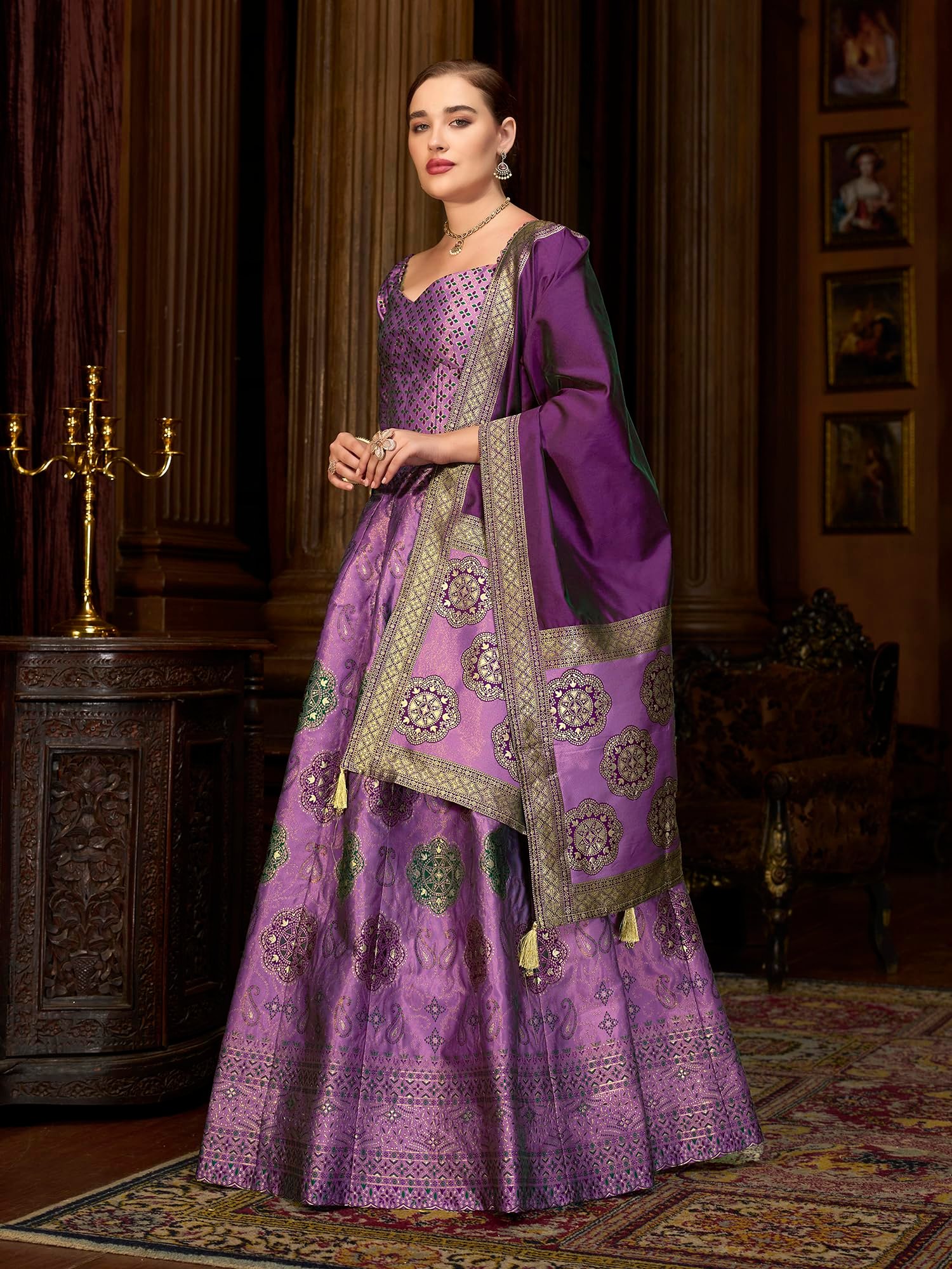 PURVAJA Women's Kanjiwaram Semi-Stitched Lehenga choli (Bahaar-Purple_Free Size)