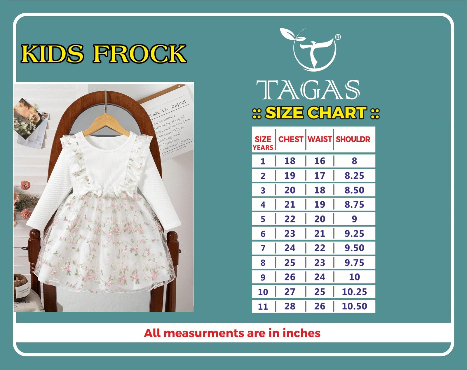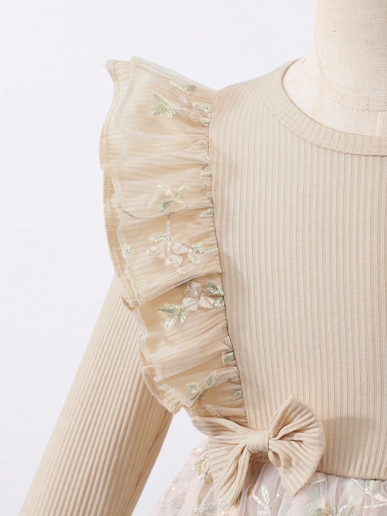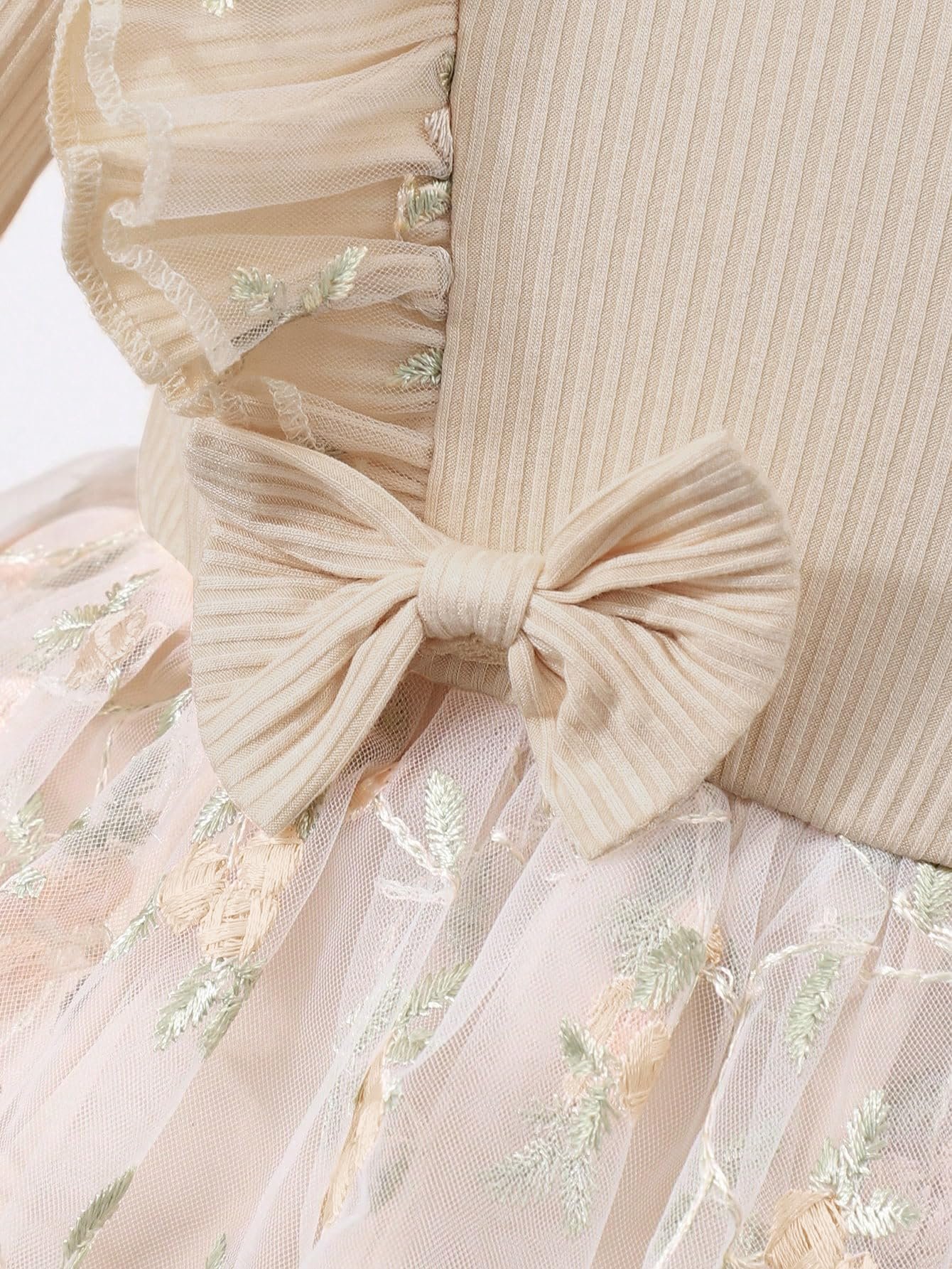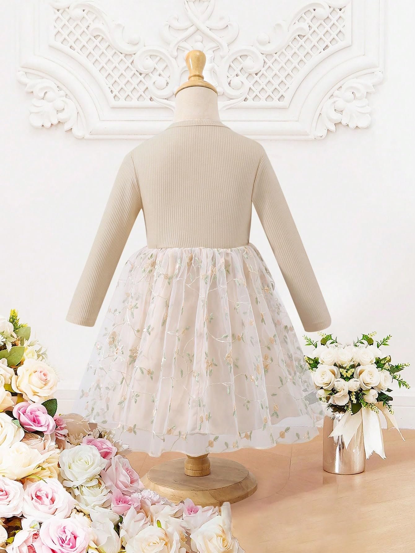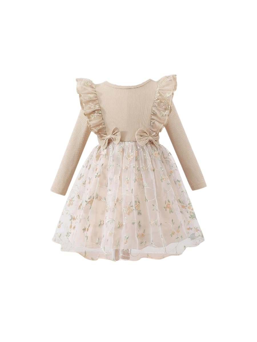 Product Description:Make every special moment memorable with this exquisite girls’ dress featuring intricate floral embroidery and decorative frilled shoulders. The soft ribbed top offers comfort, while the layered tulle skirt with pastel blooms adds a magical touch. Ideal for celebrations, this dress combines vintage elegance and modern softness, perfect for your little one’s next eventlong wear. The flared skirt adds a playful touch, making it perfect for parties, outings, and special occasions. Easy to wash, durable, and gentle on skin—this dress will surely become your girl’s favorite go-to outfit